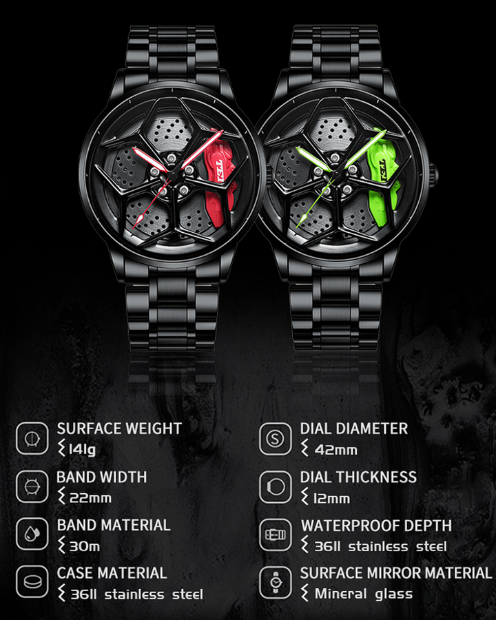 - Inside the watch: Hollow 3D car wheels and brake discs (not 3D paper printing) All-metal internal structure.